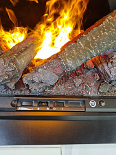 На верхней панели расположен сенсорный экран, с которого можно управлять функциями очага. Также элементы управления дублируются на пульте дистанционного управления. Он дополнительно оборудован экраном, на котором отображается режим работы и текущий статус камина.