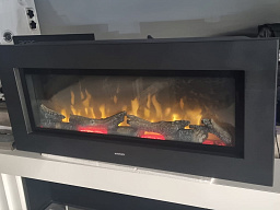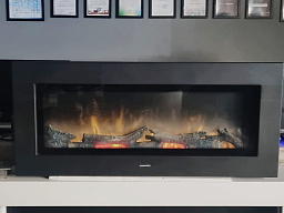 Для монтажа электрокамина предъявляются минимальные требования. Его без опасений можно установить рядом с телевизором и другой бытовой техникой. А органичное соотношение ширины и высоты позволит легко подготовить портал или нишу. Отступ от края до линии огня составляет всего 70 мм с каждой стороны, что обеспечивает максимальную линию огня. Все щели при монтаже скрывает верхняя панель.