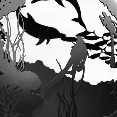 Уличный очаг Подводный мир Firecup моментально приковывает к себе взгляды гостей благодаря своему уникальному дизайну, выполненному вручную. На металлической сфере вырезан подводный мир – через эти прорези во время горения костра пробивается жаркое пламя, которое дарит тепло всем окружающим.