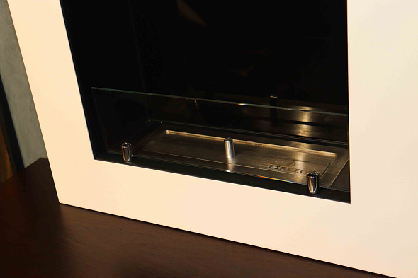 Закаленное стекло на корпусе выполняет не только декоративную функцию. Оно защищает огонь от сквозняков и сокращает безопасное расстояние от него до других предметов интерьера со 100 см до 40 см.