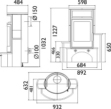 - Размеры очага ШхГхВ, (мм) 695x180x596