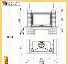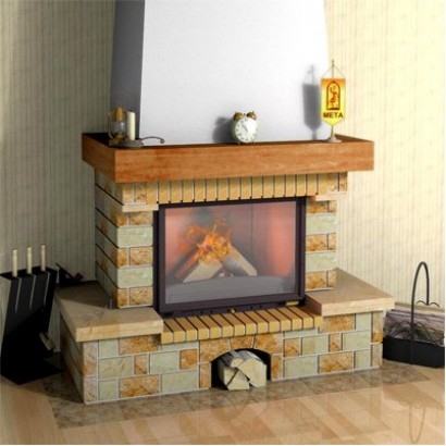 Притопочная и надтопочная часть выполнена из шамота песочно-желтого цвета. Каминная балка, изготовленная из МДФ и шпонированная дубом, послужит отличной полкой для каминных аксессуаров, таких как часы, канделябры, рамки с фотографиями и др.