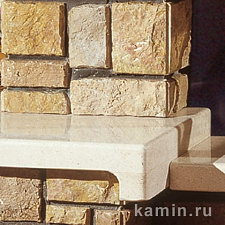 Облицовка из Limestone, полка из мрамора Yellow Quartzite. Дровник справа.
