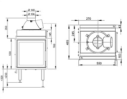 Модель относится к пристенным каминам деревенского дизайна, с характерными элементами этого стиля: Д-образной формой корпуса, каминной балке из массива дерева и высоким дымоходным колпаком.