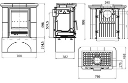 Каминная топка оснащена системой очистки стекла, встроенным шибером и системой подводки внешнего воздуха в камеру сгорания, а также оборудована цепным механизмом подъема двери, съемной колосниковой решеткой и ножками, которые дадут возможность установить топку на неровной поверхности.